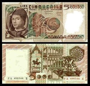 Portretul unui bărbat realizat de Antonello este înfățișat pe bancnota italiană de 5.000 de lire , emisă între 1979 și 1983 .