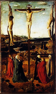 Răstignirea de la Sibiu, datând din jurul anului 1460 și adăpostită la Muzeul Național Brukenthal , a inaugurat probabil una dintre temele de bază ale producției sale: martiriul lui Hristos. Această lucrare a reluat iconografic Calvarele flamande, în special în partea inferioară a panoului; în timp ce partea superioară, în care aranjamentul ortogonal al lui Hristos și al tâlharilor creează o cutie spațială tangibilă, demonstrează o cunoaștere atentă a volumetriei spațiale italiene. Roberto Longhi considera că partea superioară a panoului de la București a fost adăugată câțiva ani mai târziu, deoarece cele două matrici culturale tipice Messinei, flamandă și italiană, sunt aici doar juxtapuse și nu contopite.