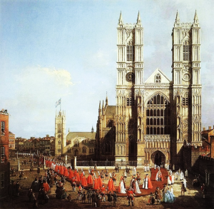 Westminster Abbey cu o procesiune a Cavalerilor din Bath , 1749