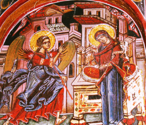 Şi intrând îngerul la ea, a zis:  „Bucură-te, ceea ce eşti plină de har, Domnul este cu tine. Binecuvântată eşti tu între femei. Iar ea, văzându-l, s-a tulburat de cuvântul lui şi cugeta în sine: Ce fel de închinăciune poate să fie aceasta? Şi îngerul i-a zis: Nu te teme, Marie, căci ai aflat har la Dumnezeu. Şi iată vei lua în pântece şi vei naşte fiu şi vei chema numele lui Iisus” (Luca 1, 28-31).
