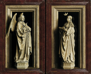Jan van Eyck a pictat un Diptic al Bunei Vestiri, ulei pe lemn în tehnica grisaille, datat de istoricii de artă între 1434 și 1436, care dă impresia unei sculpturi. Panourile se află în prezent în colecția Museo Thyssen-Bornemisza, Madrid. Dipticul are un pronunțat caracter iluzionist. Ramele și mulurile pictate fiind exemple foarte timpurii de trompe-l’œil.