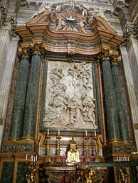 Altarul principal cu relieful Sfintei Familii de Domenico Guidi