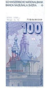 Reversul bancnotei de 100 de franci elvețieni, acum epuizată, care prezintă cupola