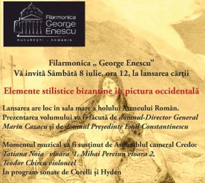 Sâmbătă 8 iulie 2023, ora 12,  a avut loc lansarea cărții „Elemente  stilistice bizantine în picturia occidentală ” a domnului Ioan Cezar Corâci, la Ateneul Român.