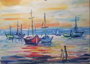 Cu ocazia lansării am realizat și o expoziție de pictură intitulată : „Reflexe de lumină pe apă”, pe care v-o prezint în cele ce urmează….