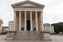 Maison Carrée din Nîmes (Franța), unul dintre cele mai bine conservate temple romane antice, pozat din două unghiuri