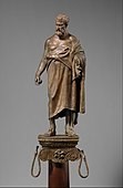 Stânga:Statuetă de bronz a unui filozof; secolul I î.Hr-Muzeul Metropolitan de Artă ,New York City