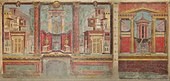 Frescă din dormitorul unei vile antice; 50-40 î.Hr.; dimensiunile camerei: 265,4 x 334 x 583,9 cm; Muzeul Metropolitan de Artă