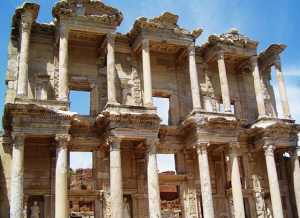 Din Wikipedia aflăm că Efes este un oraș antic pe coasta de vest a Asiei Mici, la sud de Izmir. A fost întemeiat în secolul XI î.Hr. de coloniști ionieni (greci), devenind în cursul timpului unul din cele mai dezvoltate centre religioase și comerciale. S-a aflat, rând pe rând, sub diferite ocupații străine. Templul zeiței Artemis din Efes, construit în secolul VI î.Hr., una din cele 7 minuni ale lumii antice, a fost incendiat în anul 356 î.Hr., de un cetățean din Efes cu numele de Herostrat, din dorința de a deveni celebru. Iată ce s-a păstrat…