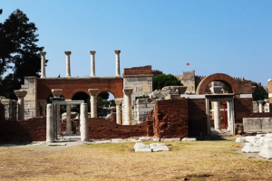 Ruinele impresionantei biserici bizantine din Efes inchinate Sfantului Ioan Teologul, marcheaza locul unde, potrivit traditiei, acesta ar fi fost inmormantat.