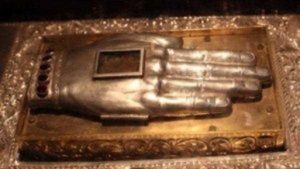 Mâna dreaptă a sfântului, primită de Mihai Viteazul ca răsplată pentru meritele sale în războiul împotriva musulmanilor, chiar de la cardinalul din Bari, a fost donată de acesta Bisericii „Sfântul Gheorghe Nou” din București, undeva în jurul anului 1600.