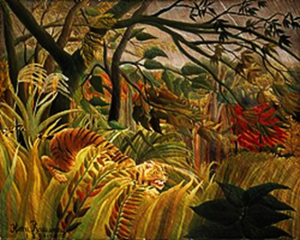 Din 1886, a expus în mod regulat la Salon des Indépendants și, deși lucrările sale nu au fost plasate în mod proeminent, au atras un număr tot mai mare de urmăritori de-a lungul anilor. Tigru într-o furtună tropicală (Surprins!) a fost expus în 1891, iar Rousseau a primit prima sa recenzie serioasă când tânărul artist Félix Vallotton a scris: „Tigrul său surprinzându-și prada nu trebuie ratat; este alfa și omega picturii.” Cu toate acestea, a trecut mai mult de un deceniu până când Rousseau a revenit la reprezentarea viziunii sale asupra junglei.