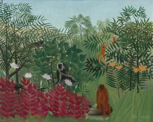 O lucrare la fel de faimoasă a lui Rousseau, inclusă în colecția lui John Hay Whitney , este Pădurea tropicală cu maimuțe , pictată în ultimele luni ale vieții sale.